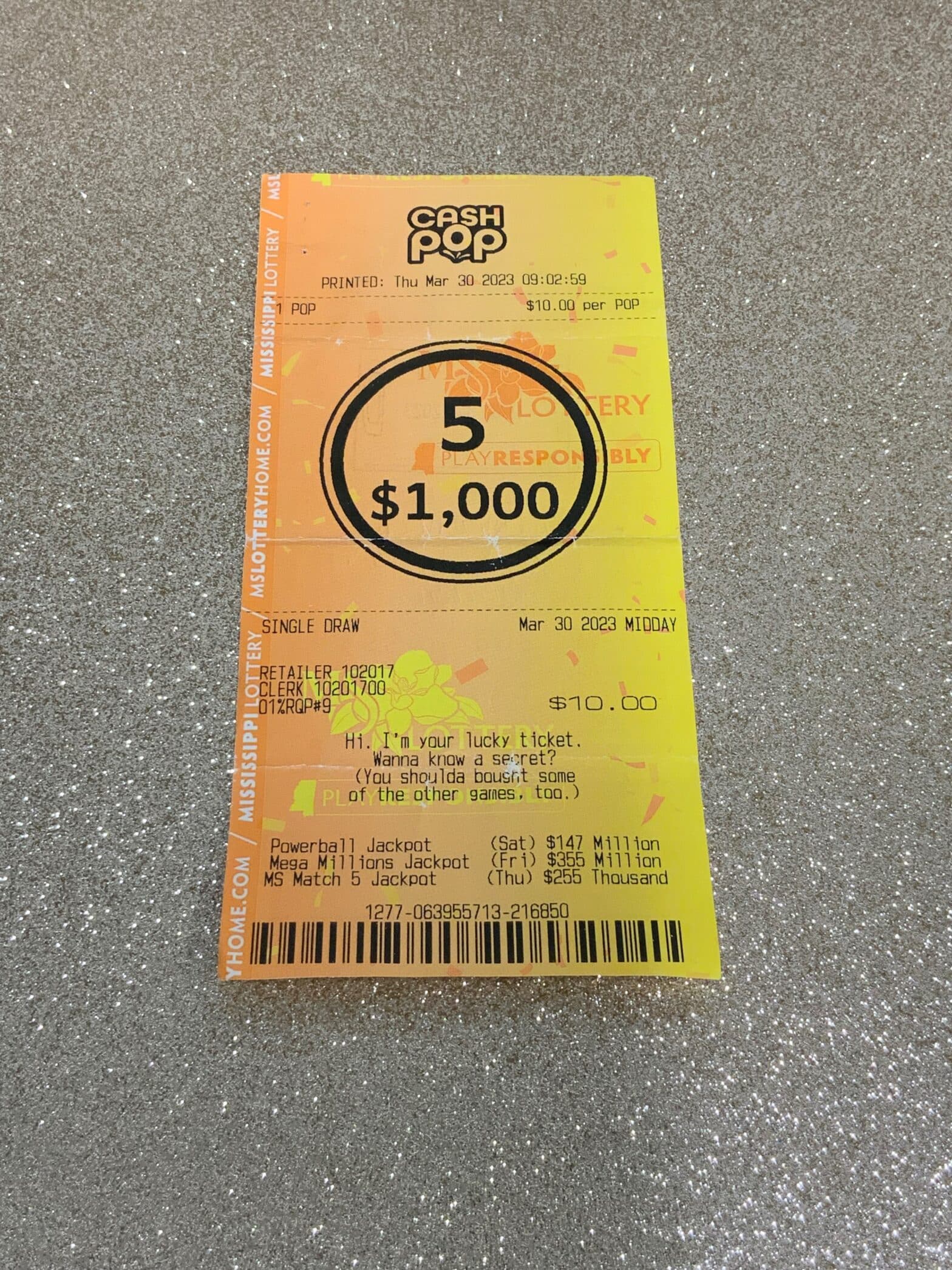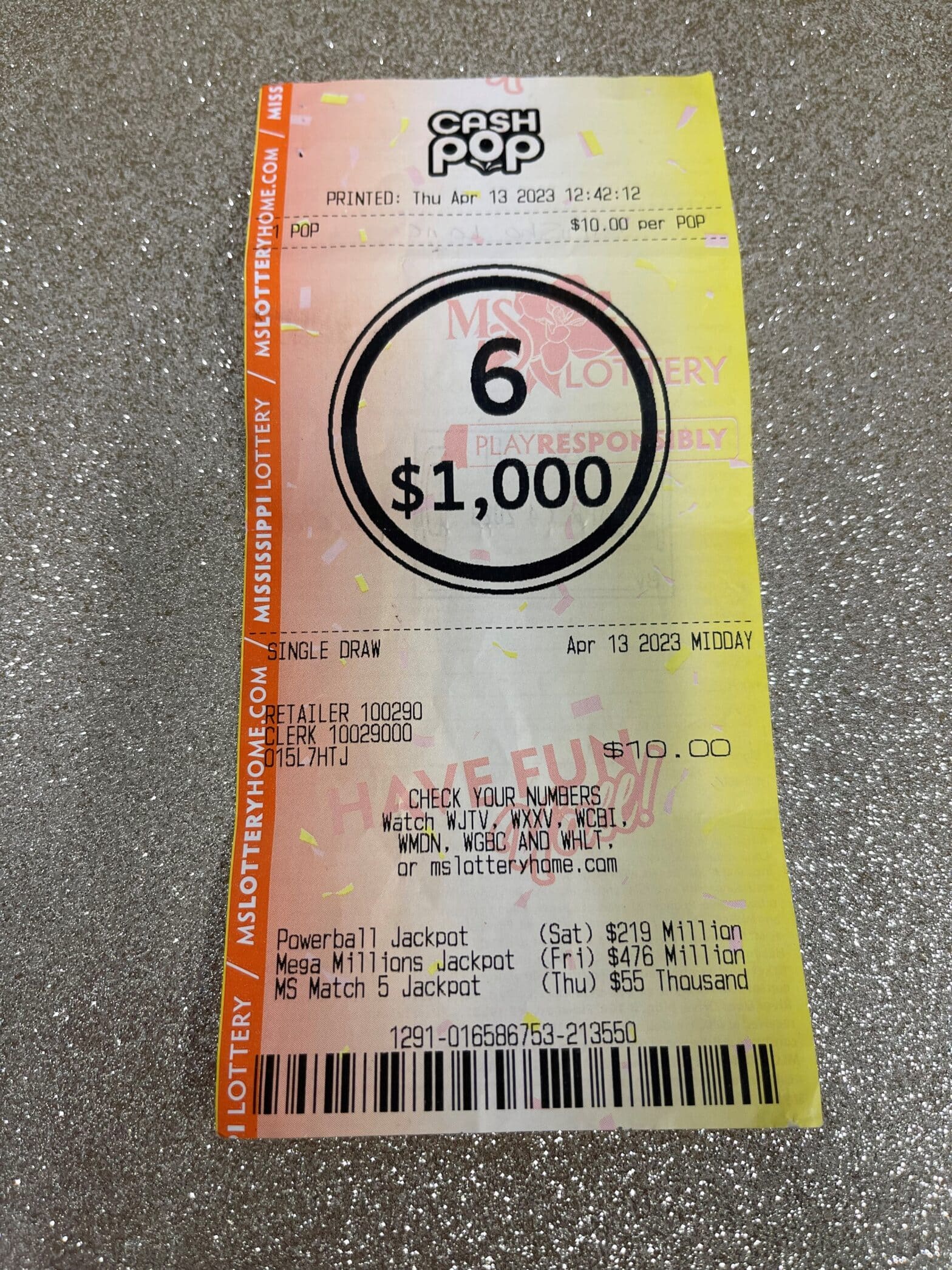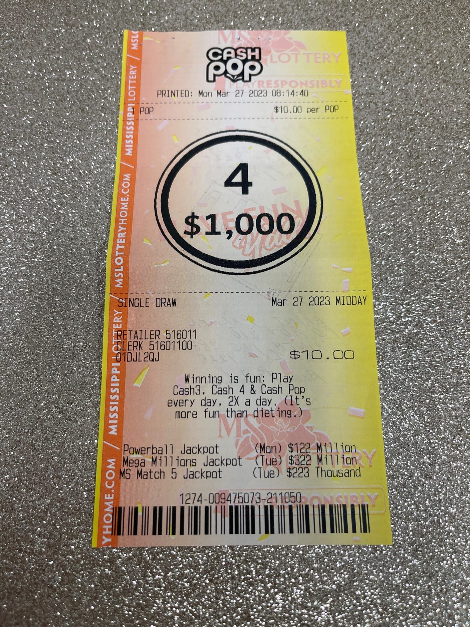 A McComb woman won $1,000 on a Cash Pop ticket purchased from Express Way 2 in McComb.