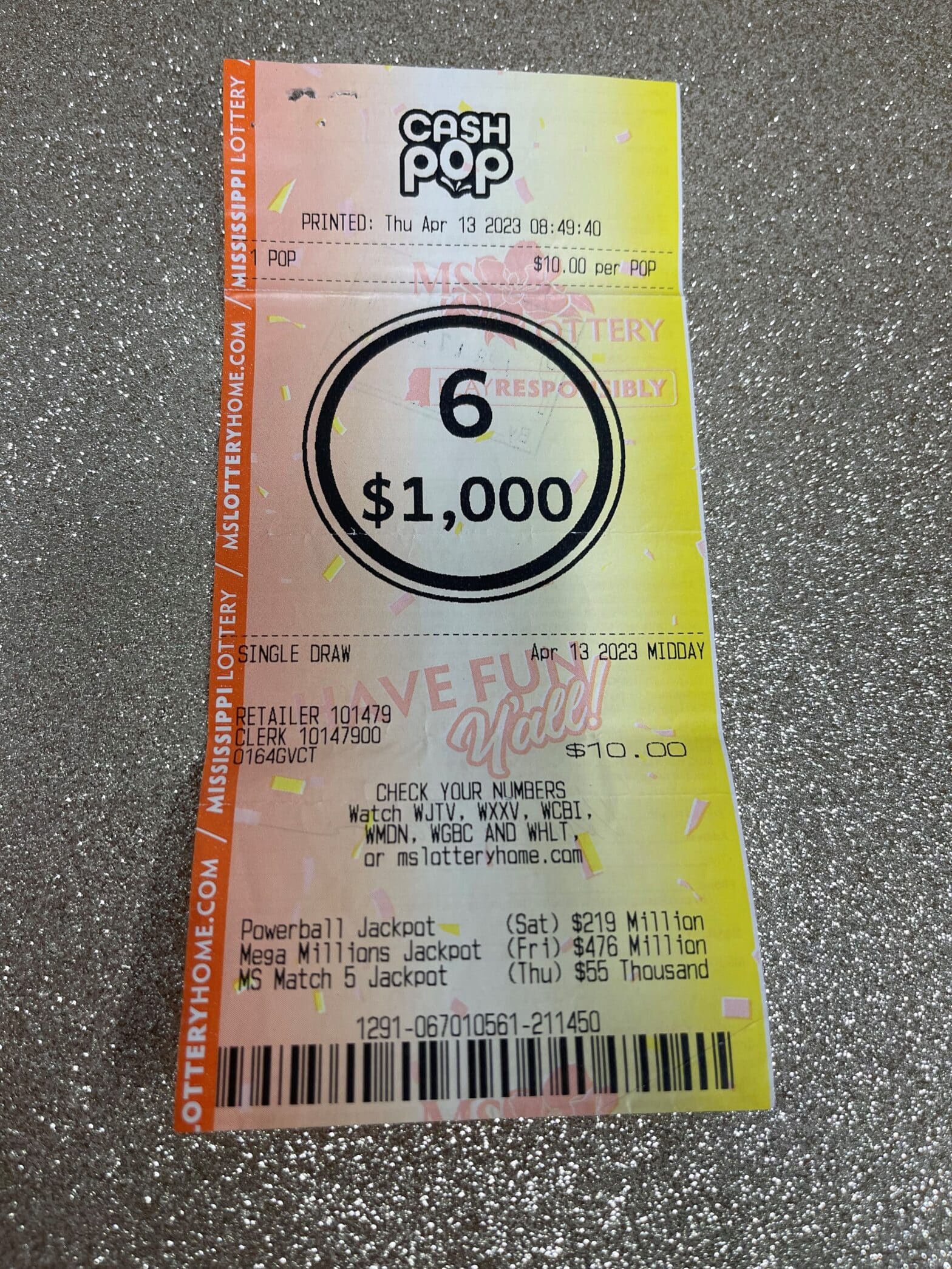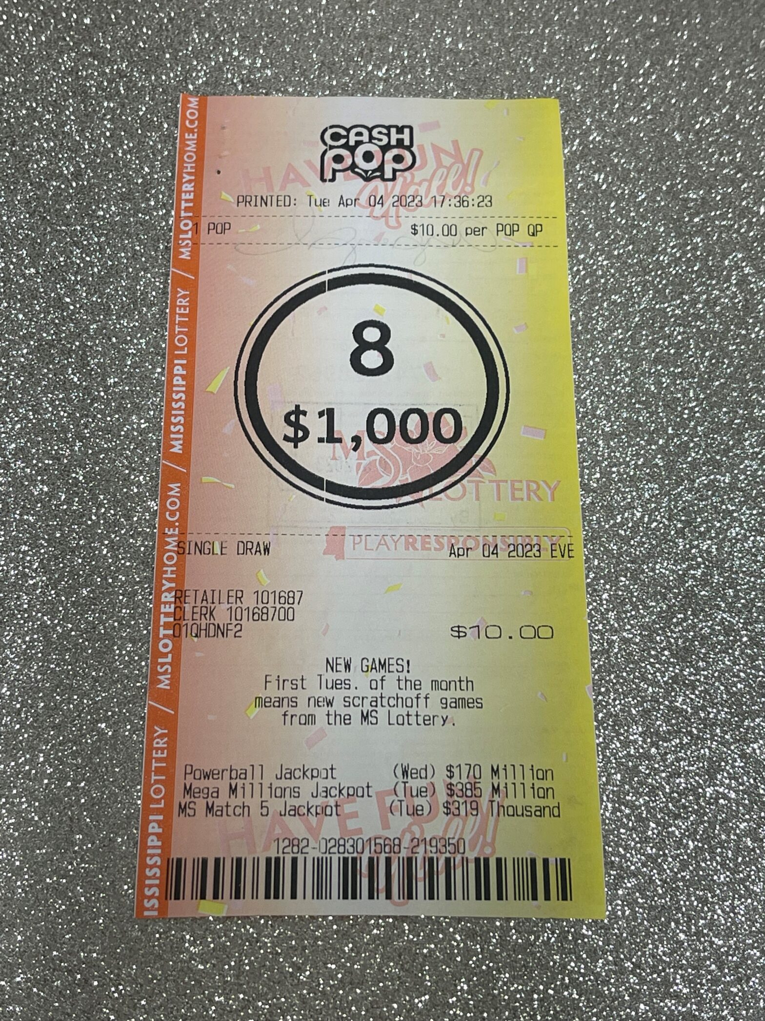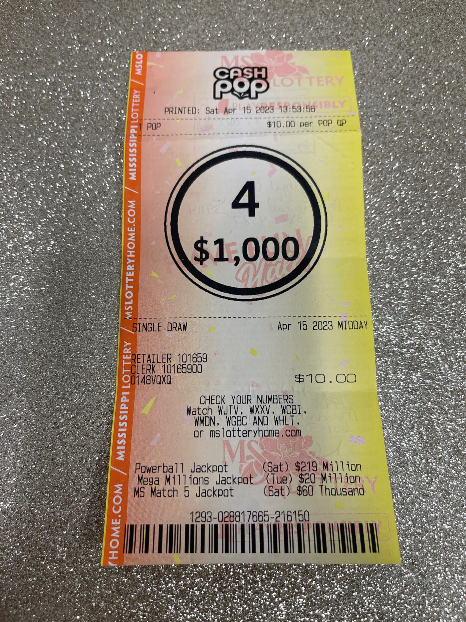 A Mendenhall man won $1,000 on a Cash Pop ticket purchased from City Tobacco & Vape in Mendenhall.