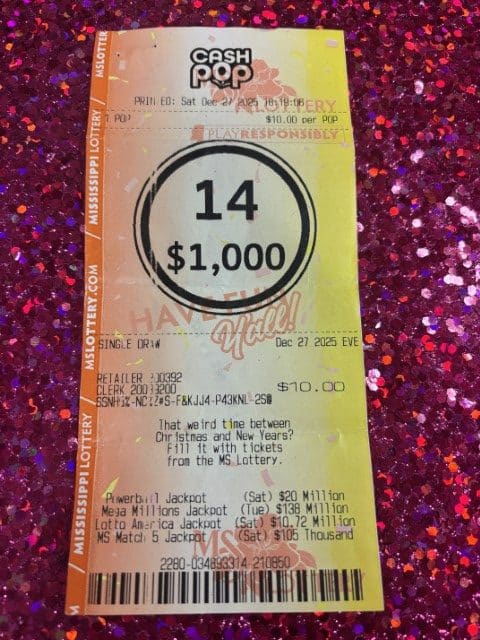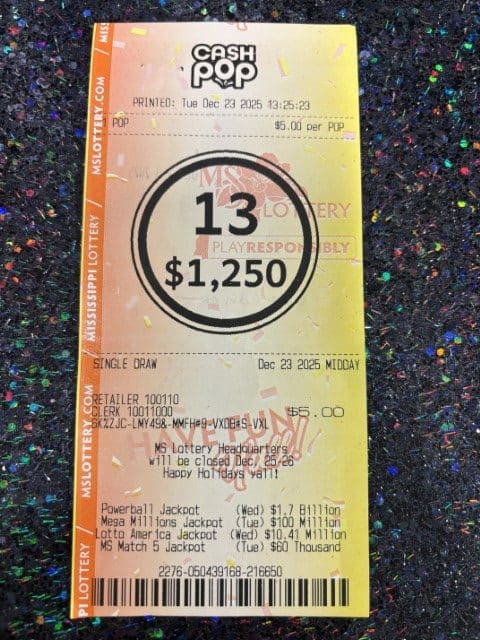 A West Point man won $1,250 on a Cash Pop ticket from Quick Shoppe #80 in Starkville.