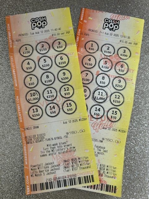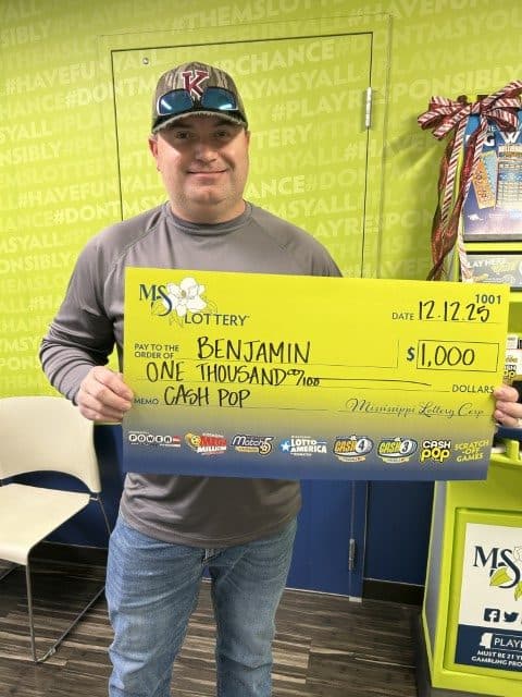 A Grenada man won $2,500 on a Cash Pop ticket from Circle K Store #2721535 in Grenada.