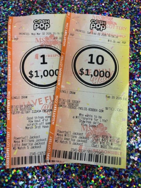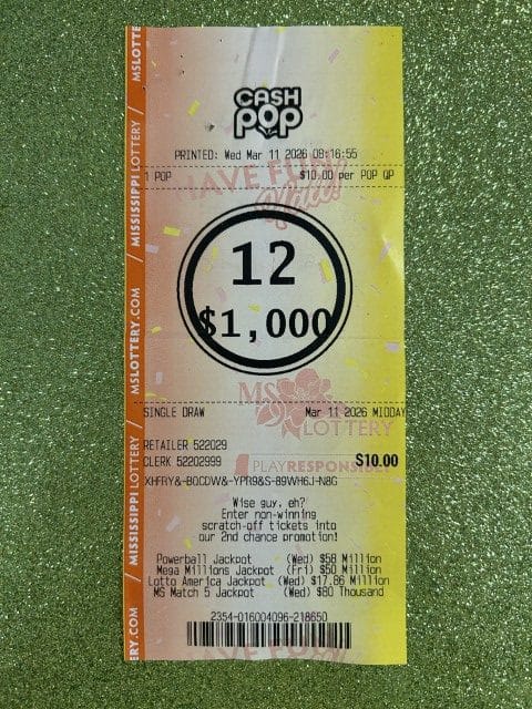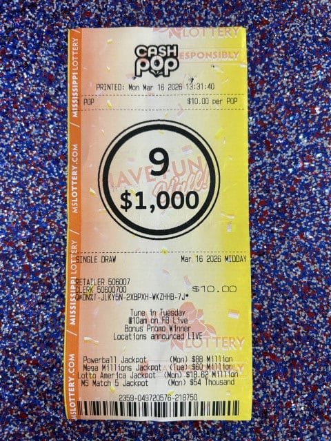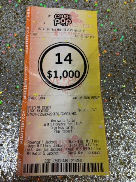 A Hazlehurst man won $1,000 on a Cash Pop ticket from Fast Mart 5 in Prentiss.