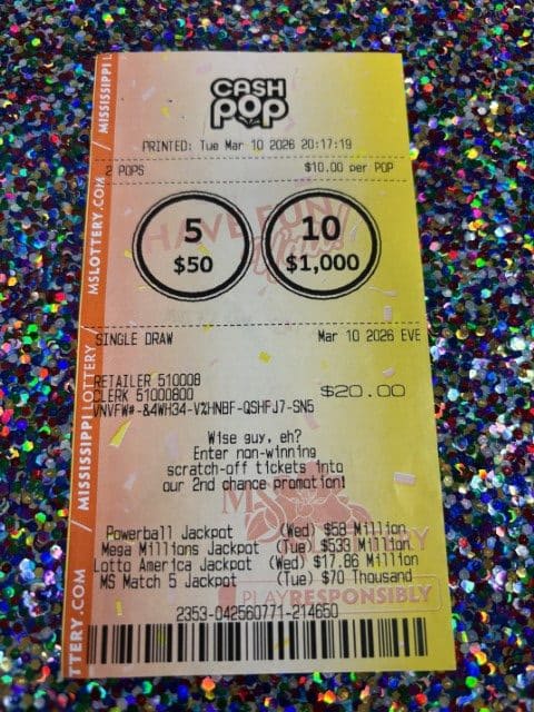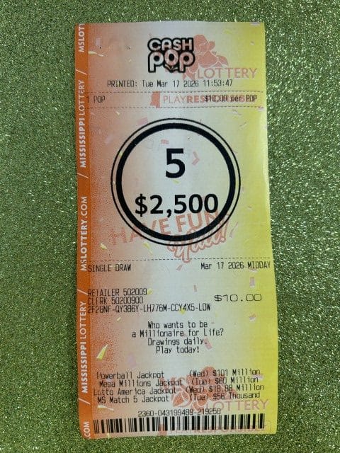 A Magee man won $2,500 on a Cash Pop ticket from Fleetway 154 in Mize.