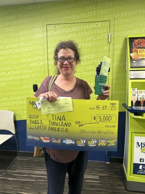 A Pearlington woman won $1,000 on a Lotto America ticket from Murphy Oil Usa #7823 in Waveland.