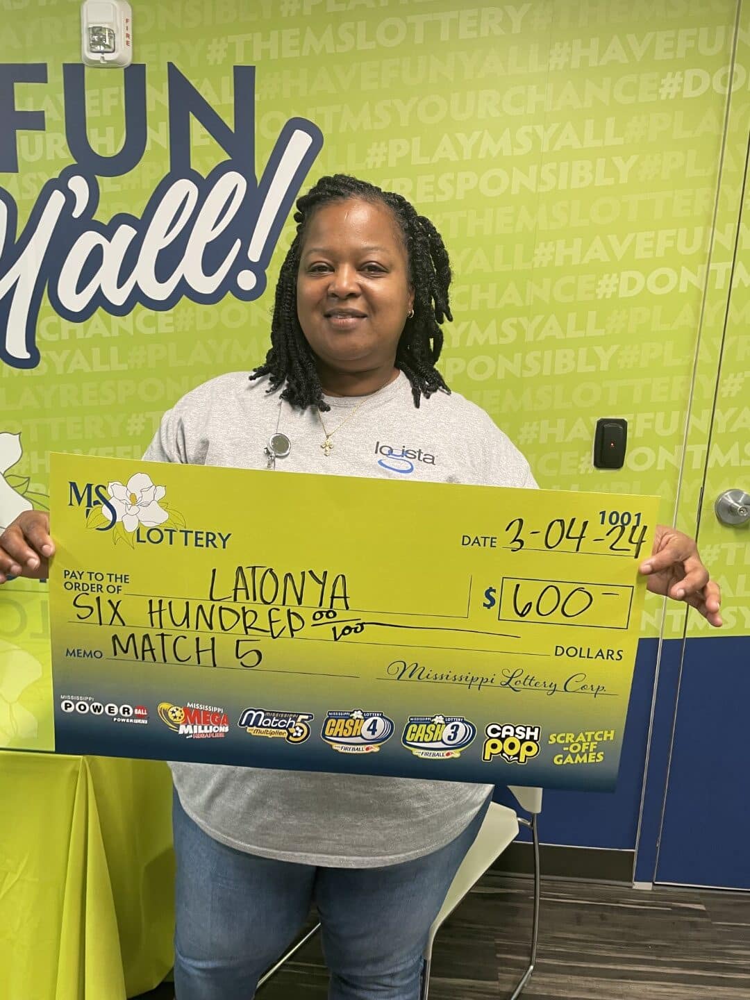 A Columbus woman won $600 on a Match 5 from Sprint Mart #4101 in Columbus.
