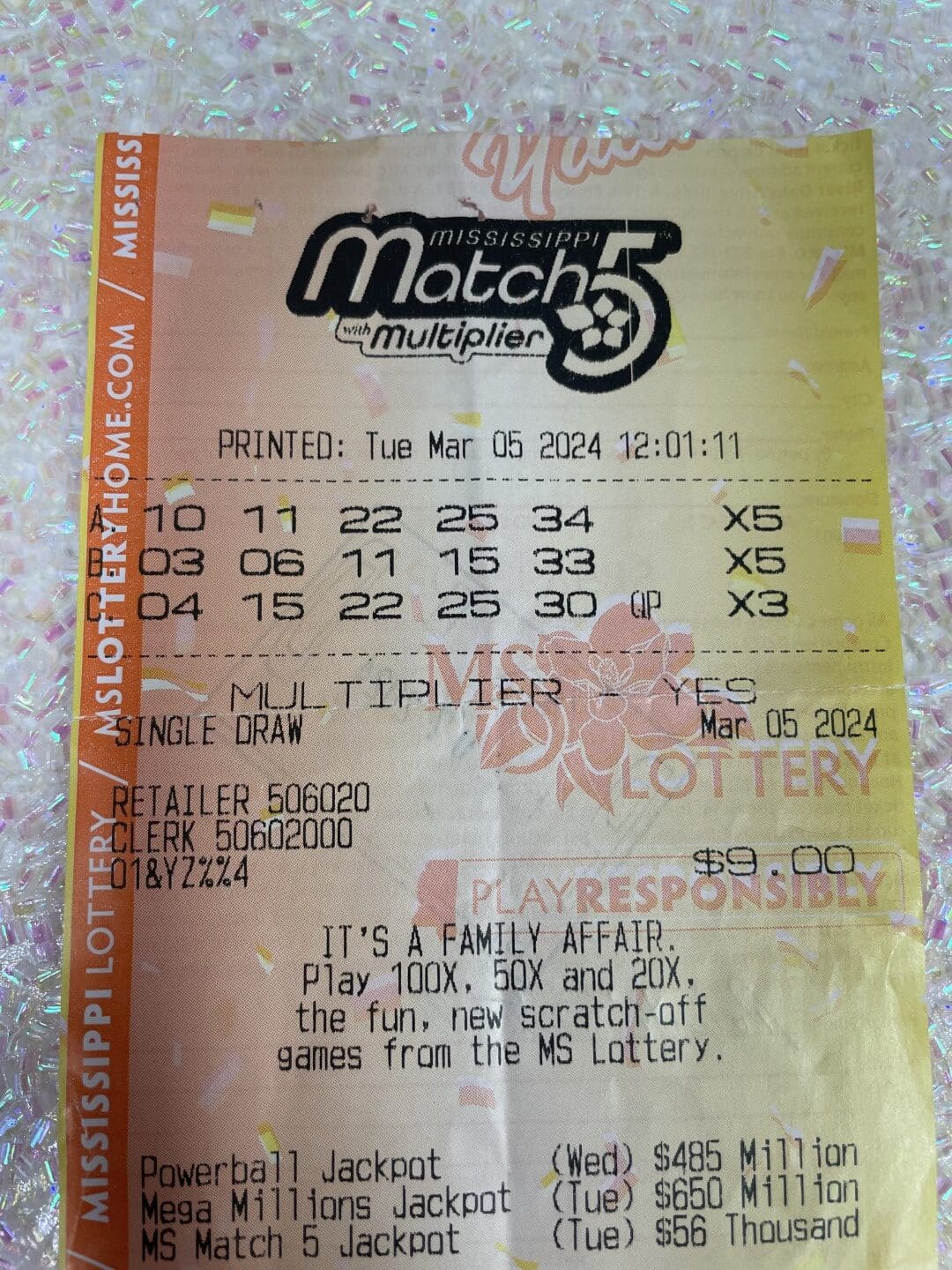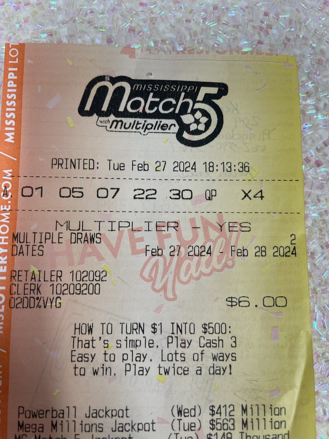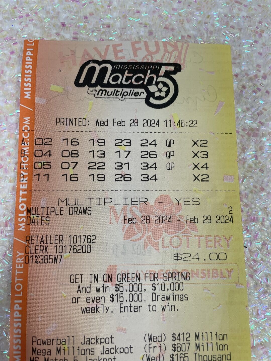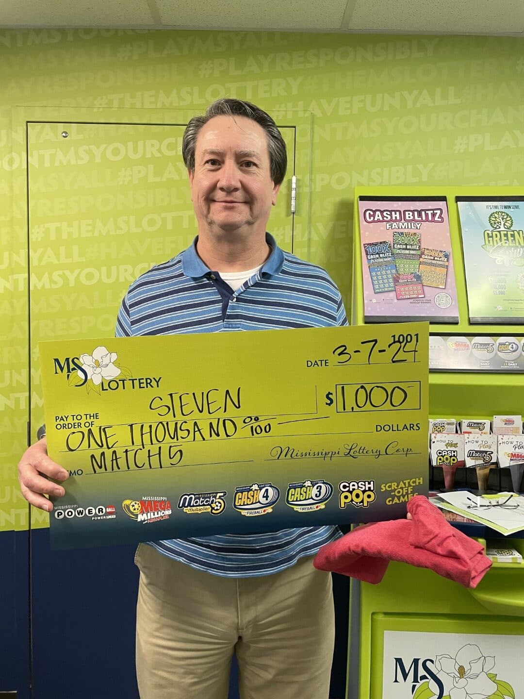 A Tupelo man won $1,000 on a Match 5 from K’s Tobacco & Brew in Saltillo.