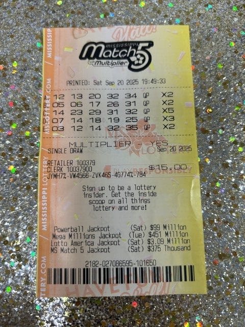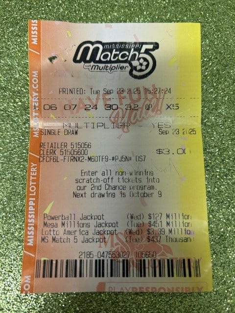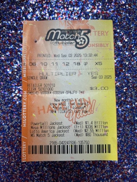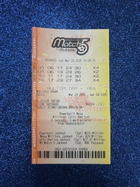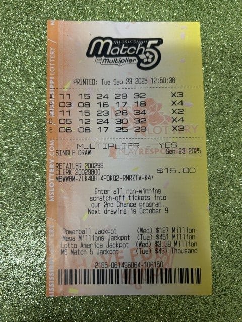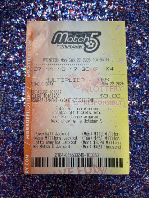 A Theodore, AL man won $1,000 on a Match 5 ticket from Keith’s Superstore #86 in Moss Point.