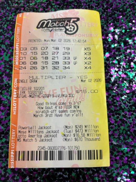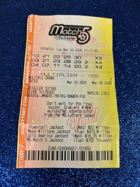 A Vancleave man won $800 on a Match 5 ticket from Polk’s Crossgates Discount Drugs #9 in Ocean Springs.