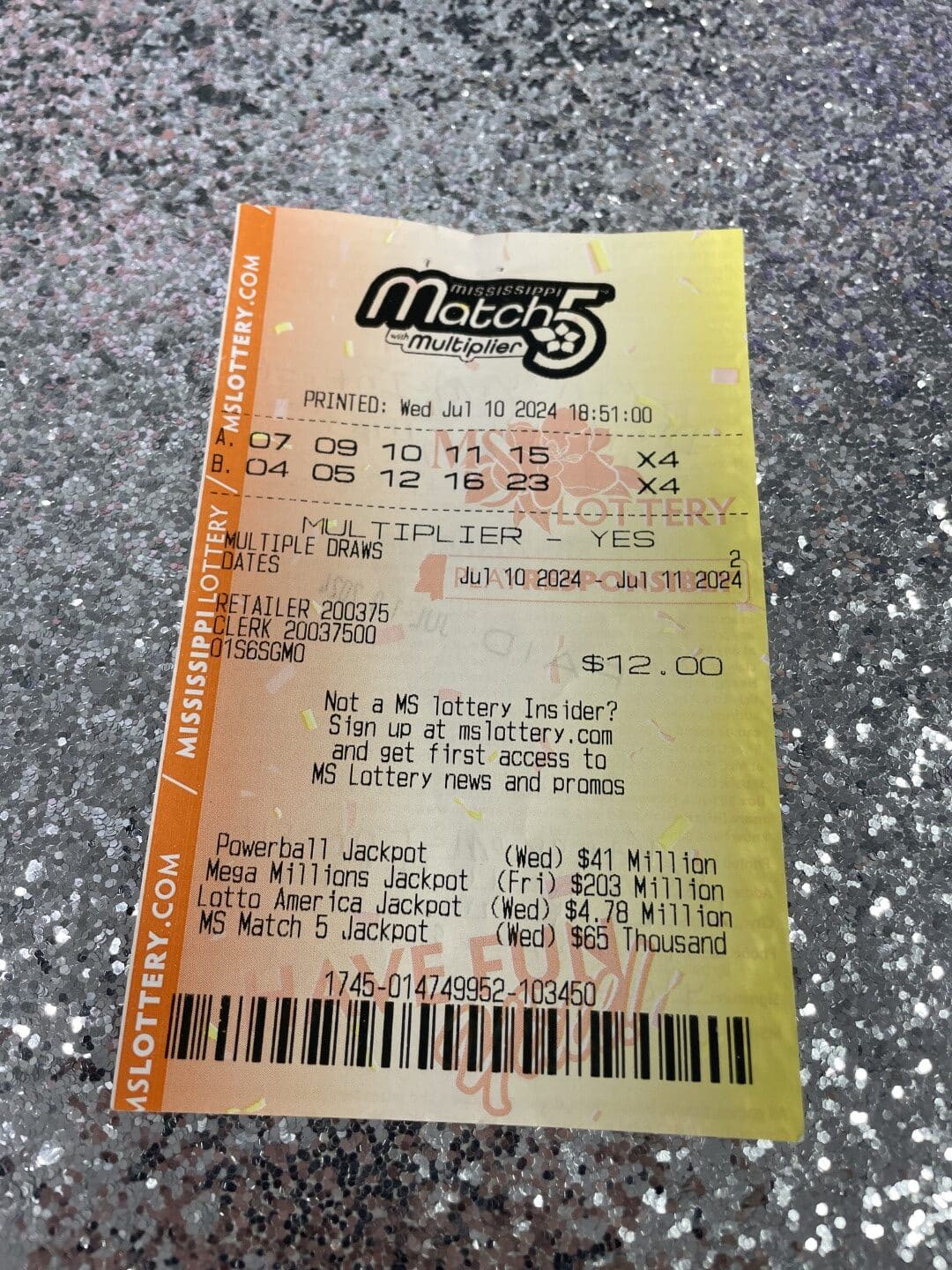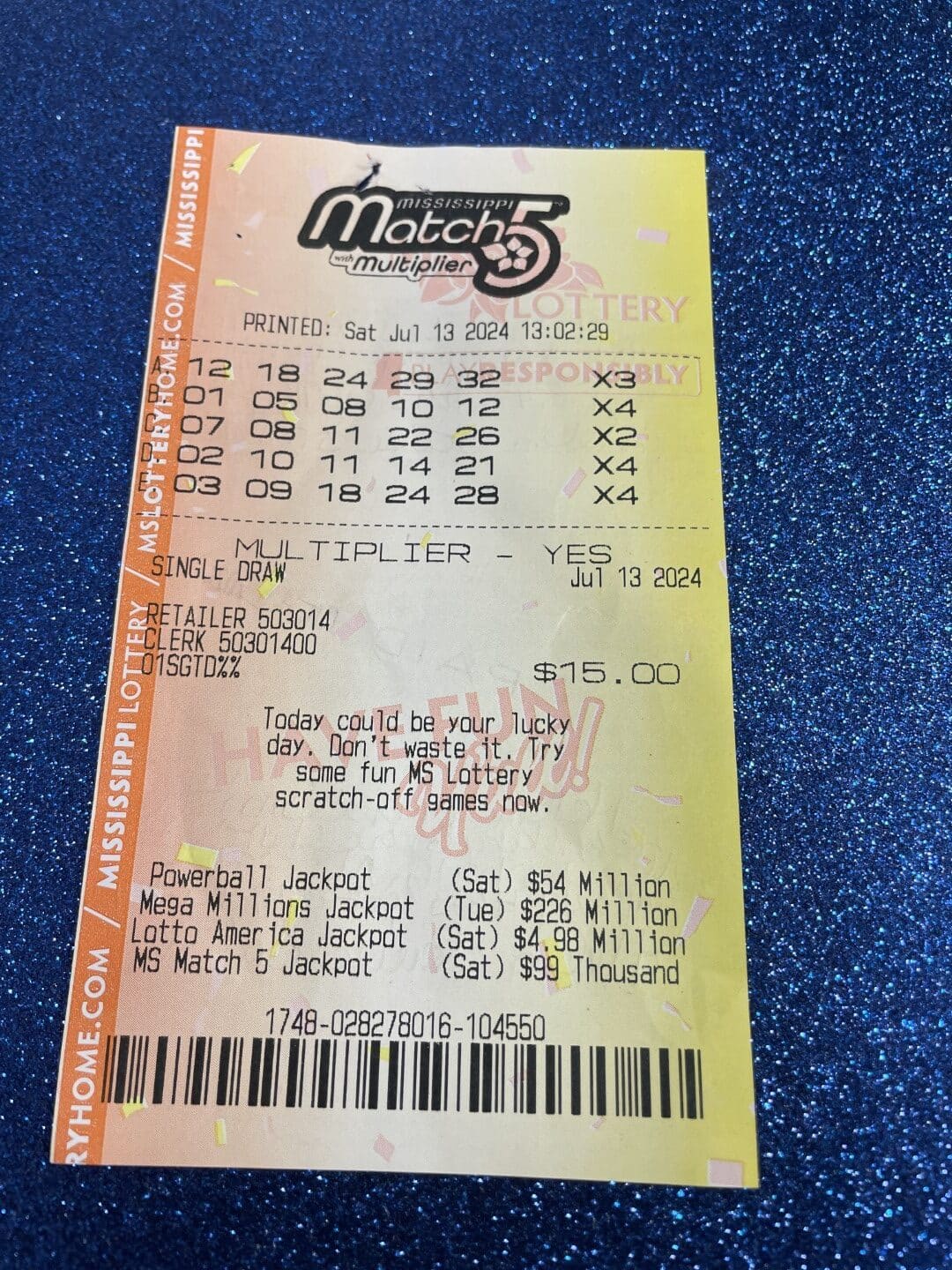 A Lumberton man won $800 on a Match 5 ticket from Keith’s Super Store #185 in Lumberton.