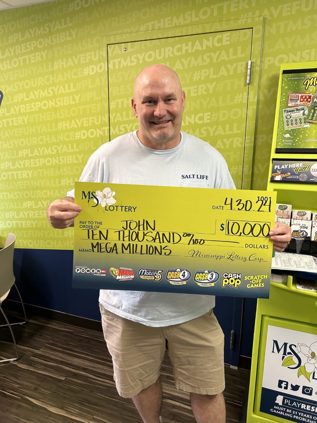 A Southaven man won $10,000 on a Mega Millions ticket from Shell in Southaven.