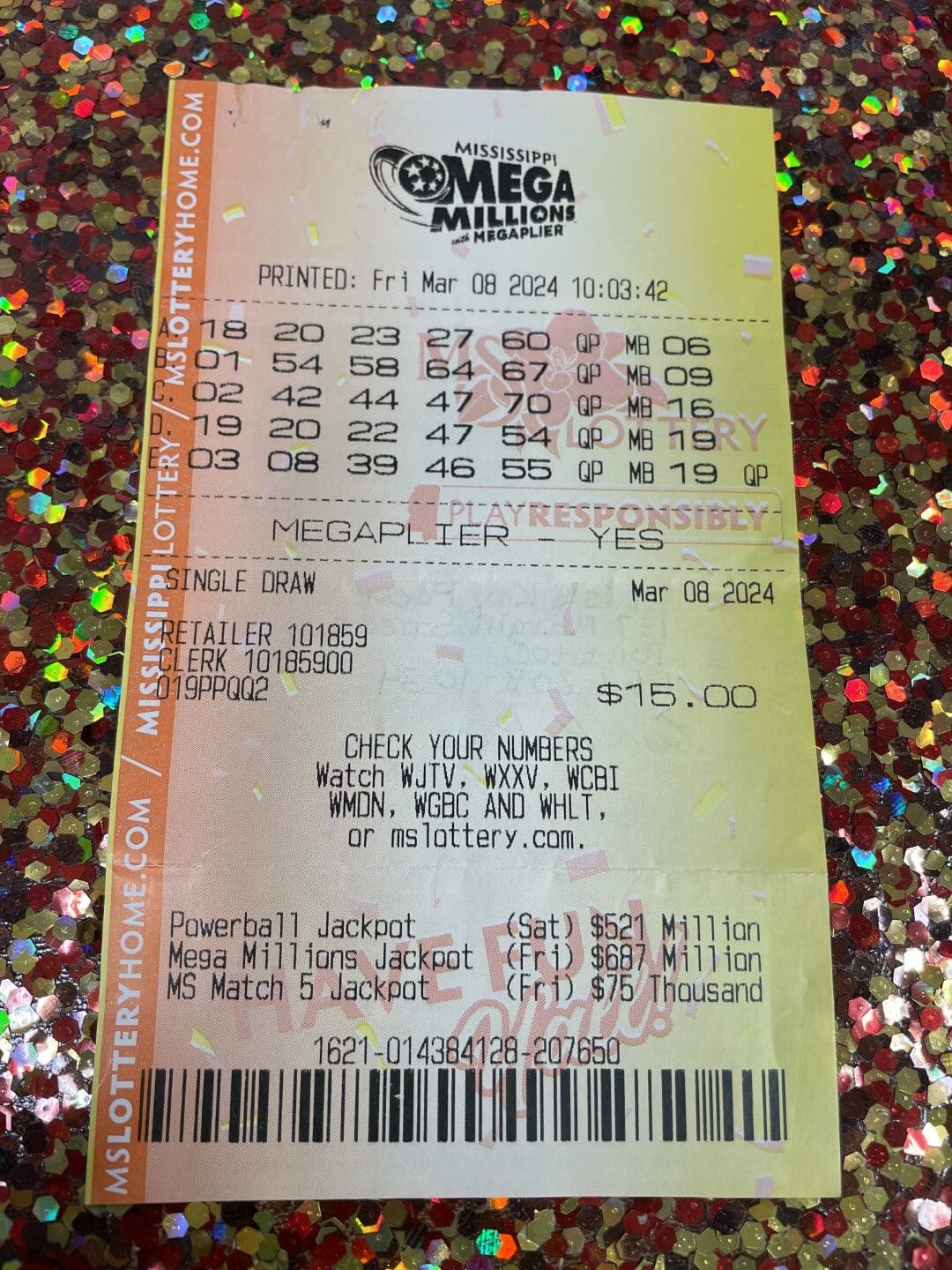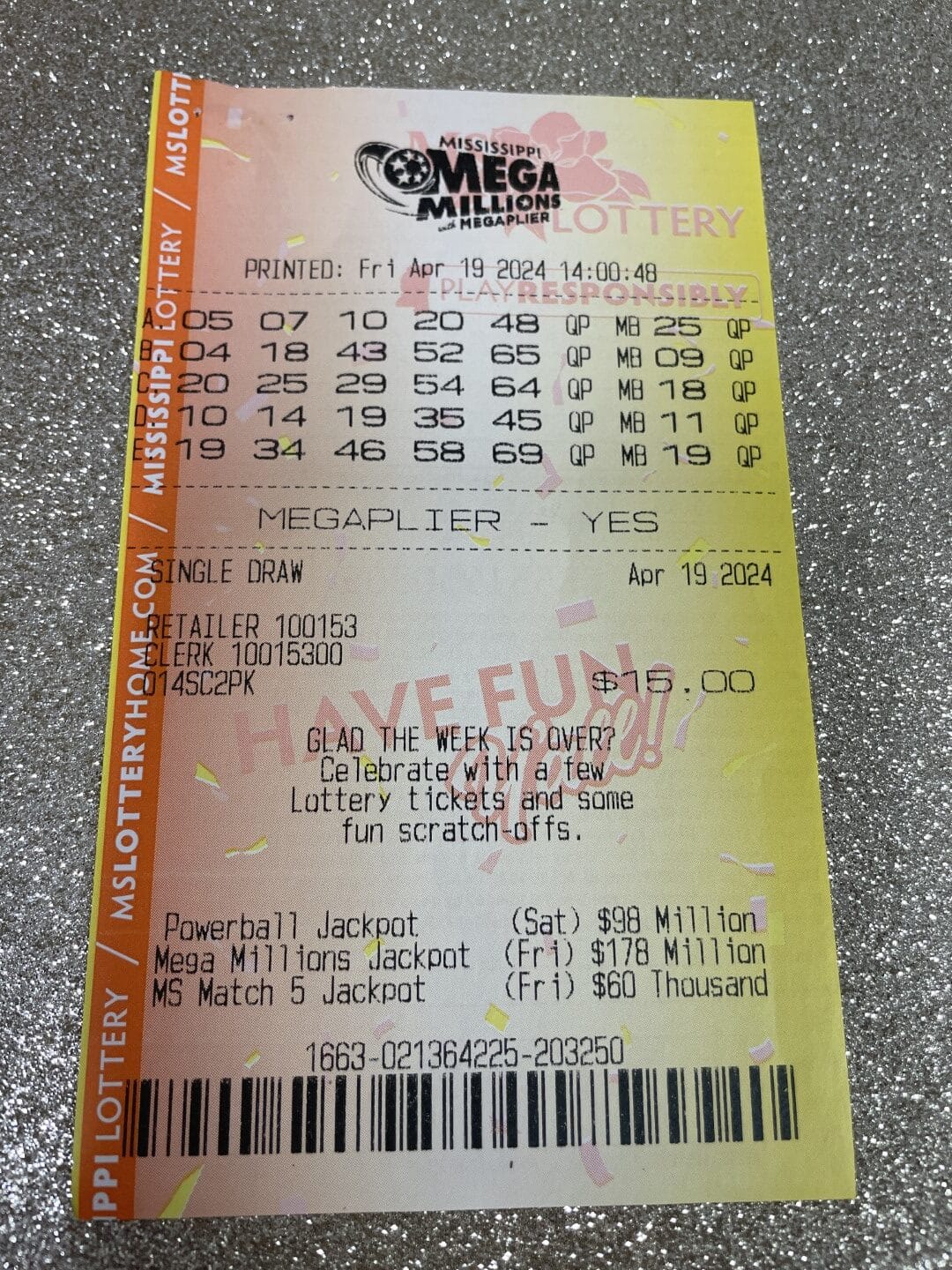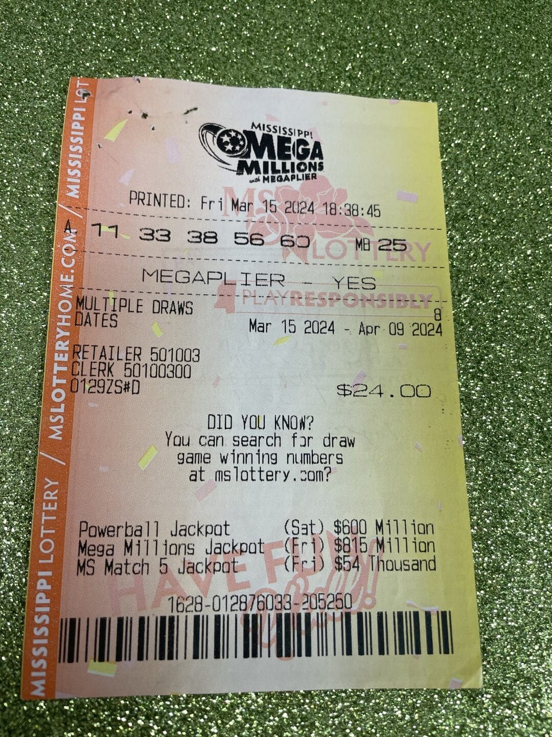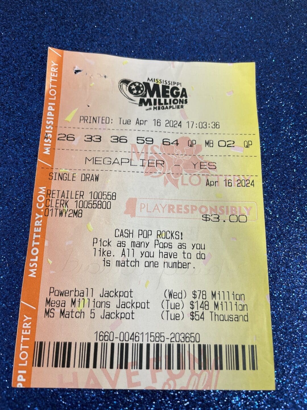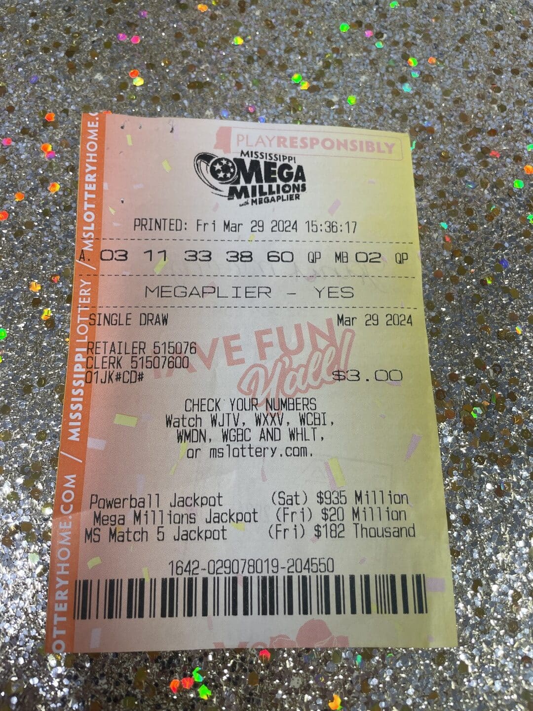 An Amory man won $2,000 on a Mega Millions ticket from Sprint Mart #7 in Amory.