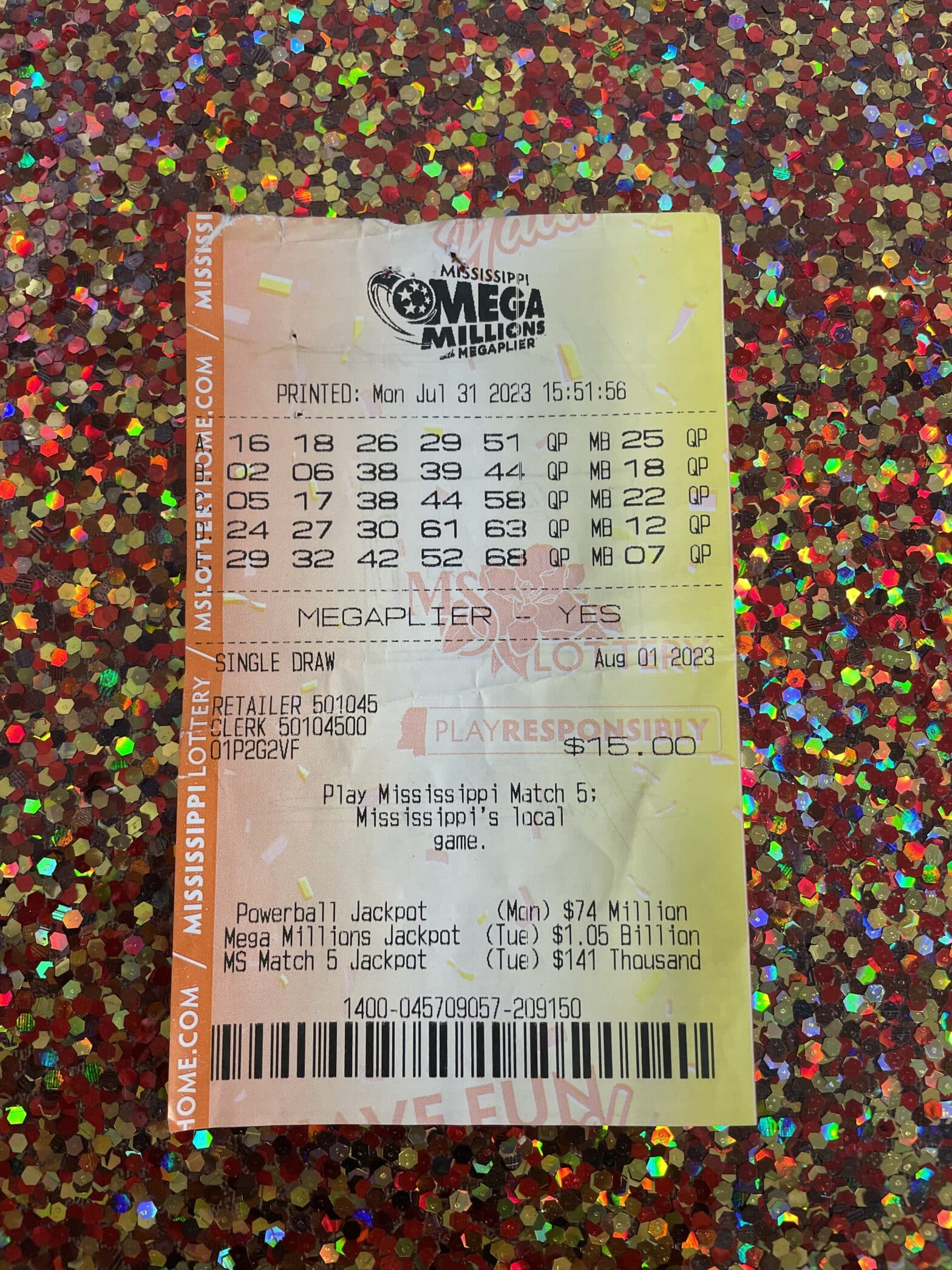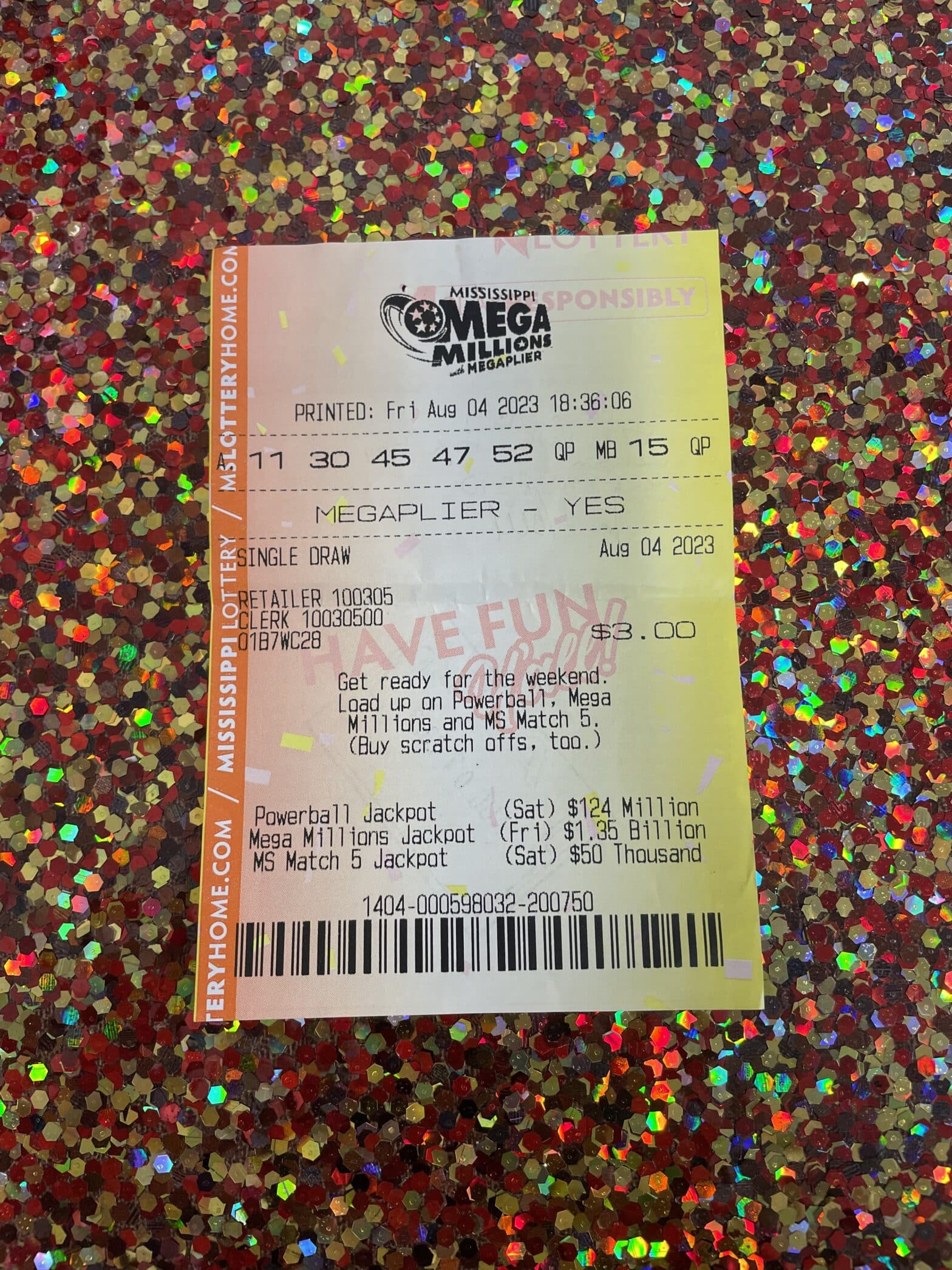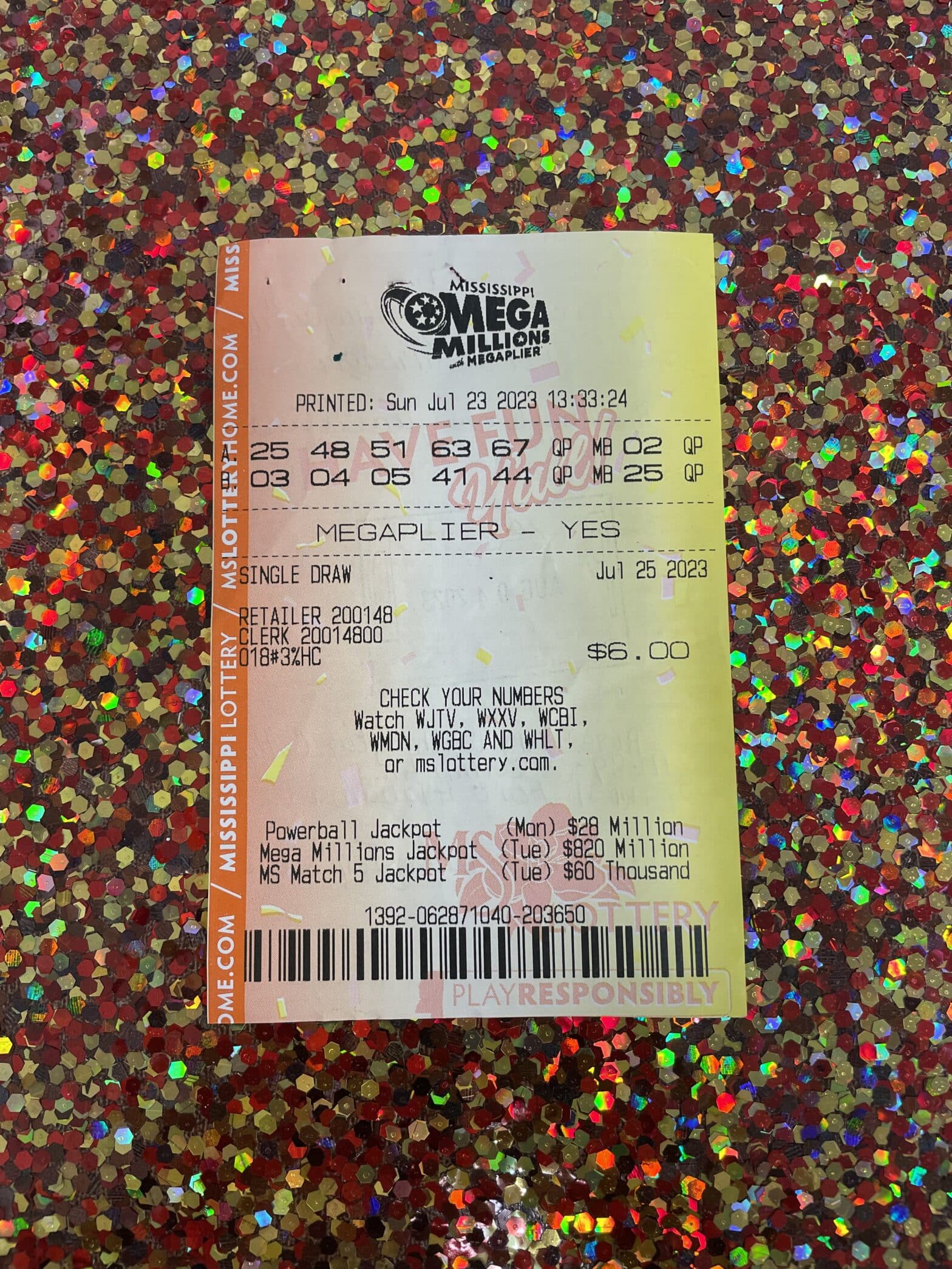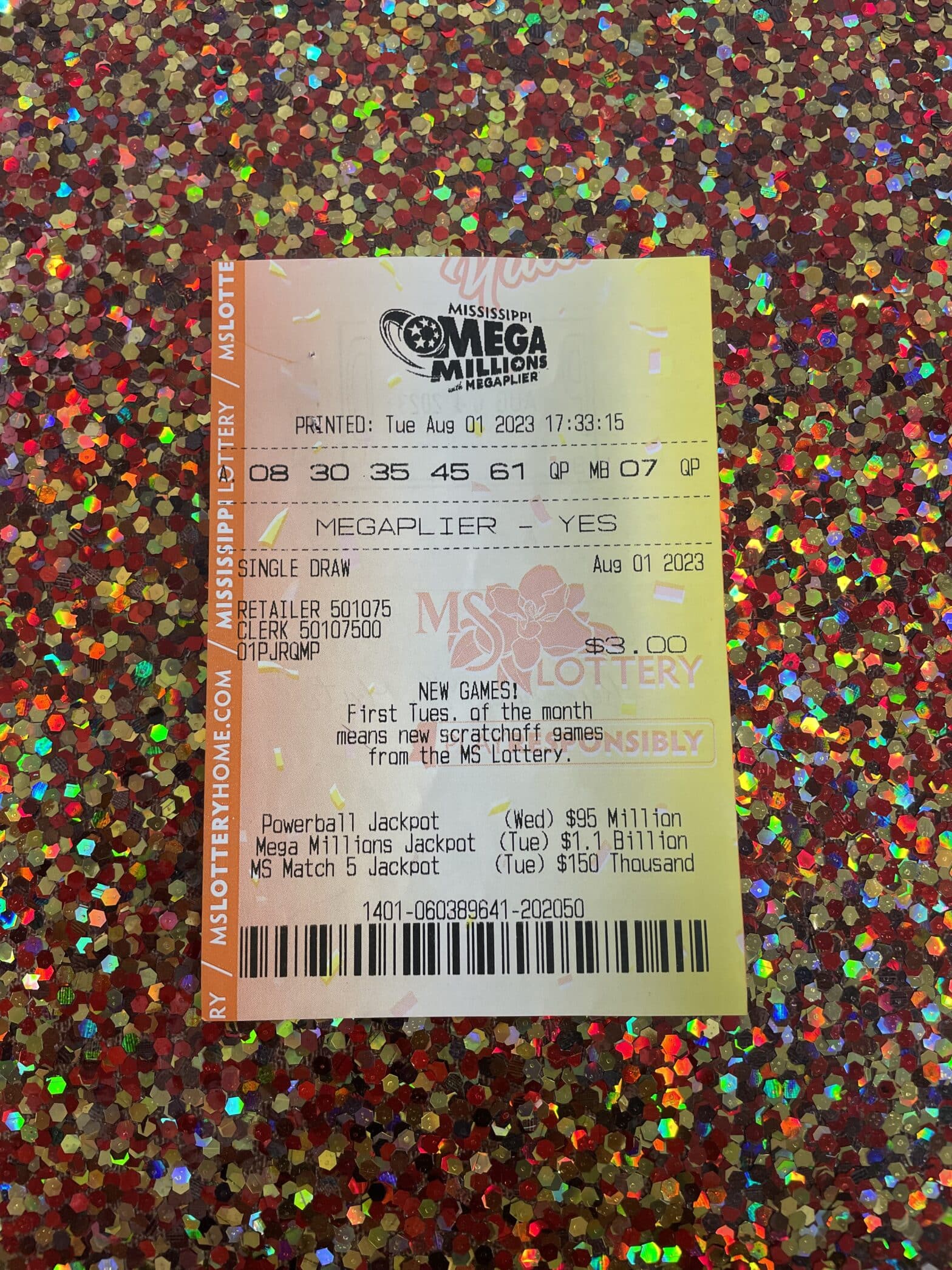 A Lucedale man won $1,000 from a Mega Millions ticket purchased from Keith’s Superstore #80 in Lucedale.