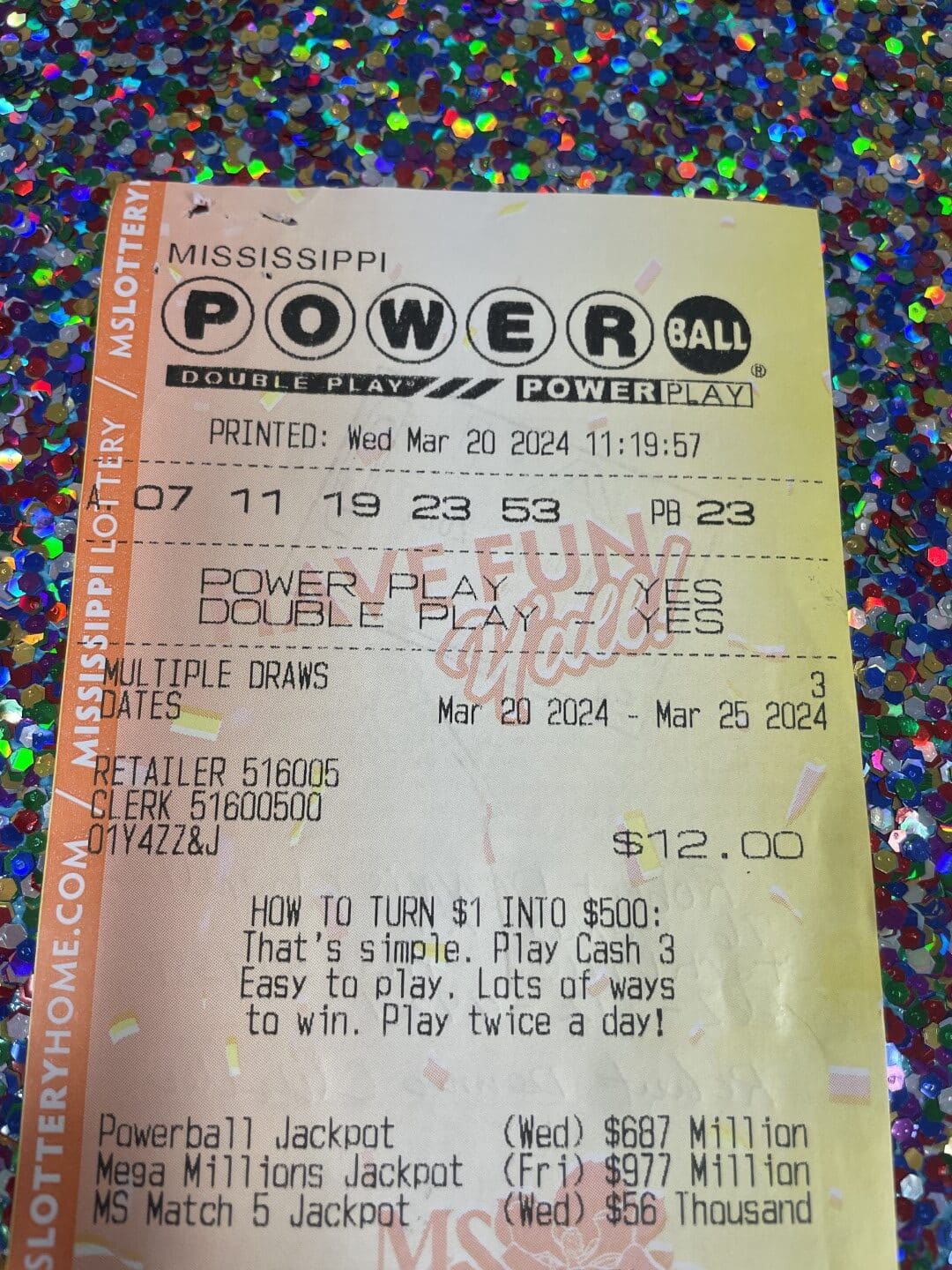A Petal man won $50,000 on a Powerball from JR Food Mart #116 in Petal.