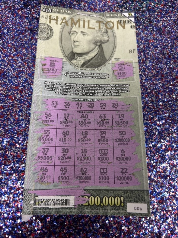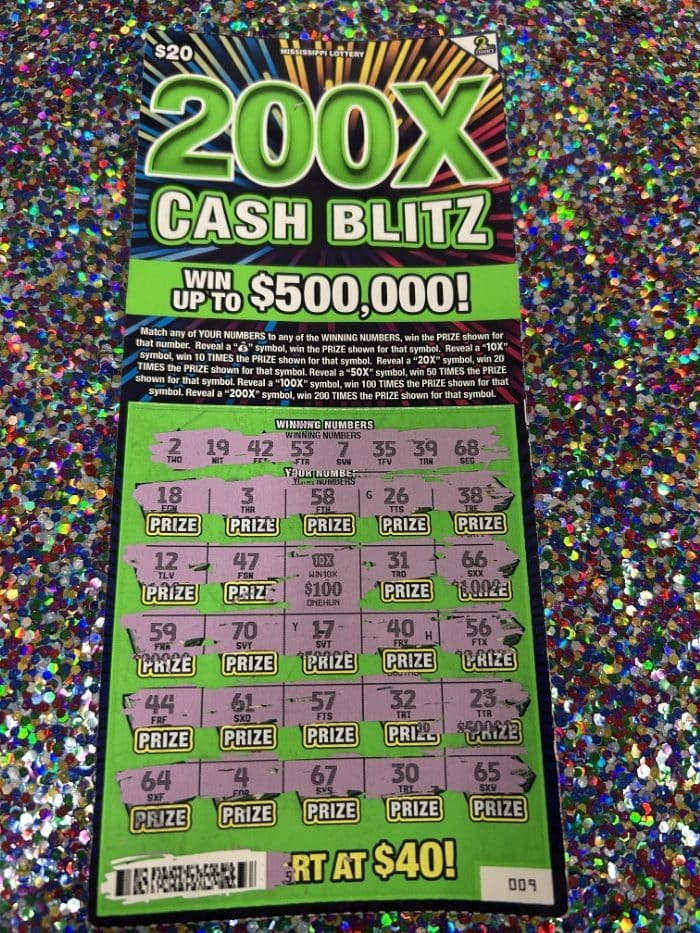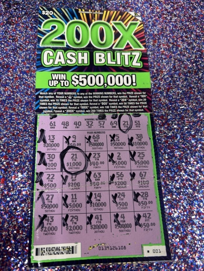 A Baldwyn woman won $1,000 on a $20 scratch-off ticket from Sprint Mart #39 in Tupelo.