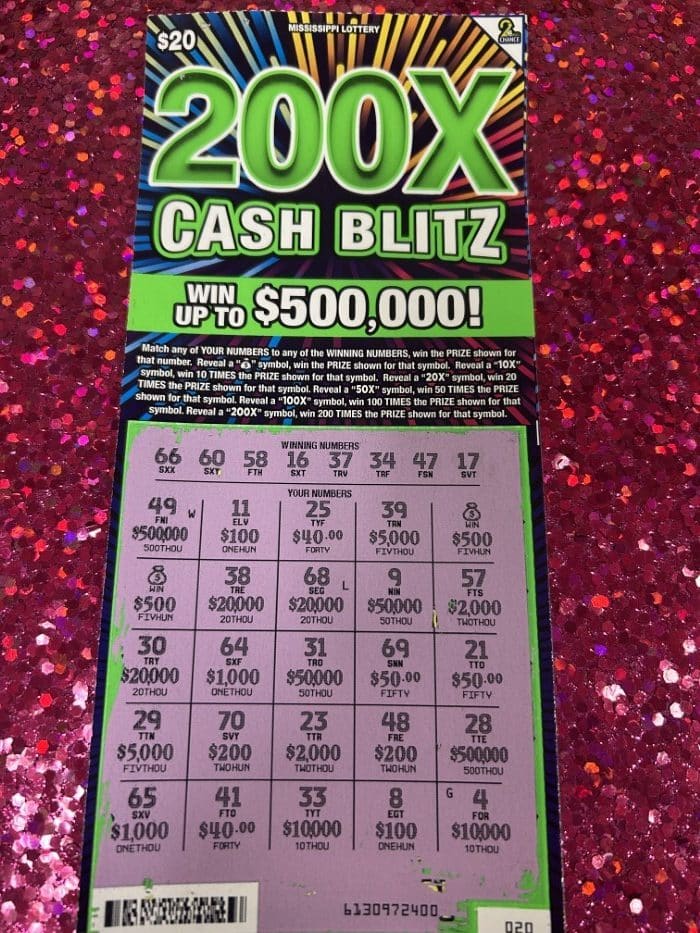 A Brandon man won $1,000 on a $20 scratch-off ticket from Love’s Travel Stop #420 in Flowood.