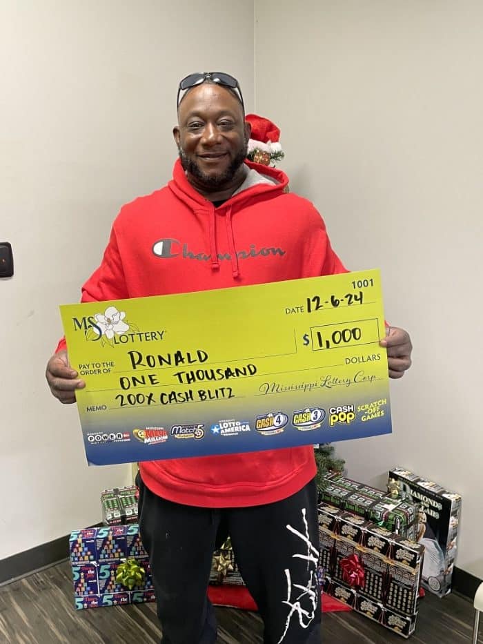 A Starkville man won $1,000 on a $20 scratch-off ticket from Sprint Mart #4140 in Starkville.