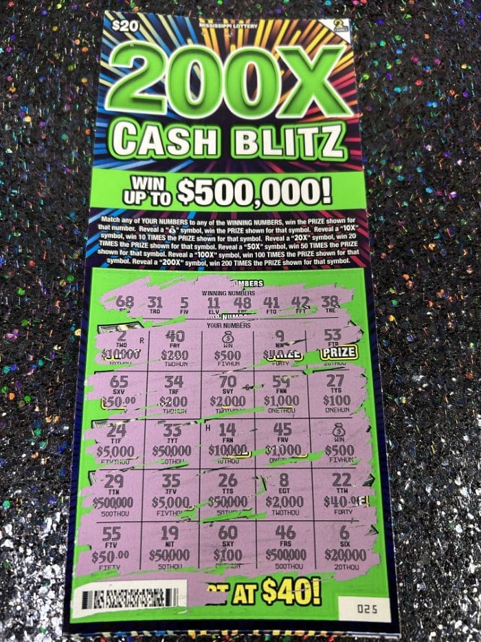 A Long Beach man won $10,000 on a $5 scratch-off ticket from Walmart Superstore #5079 in Pass Christian.