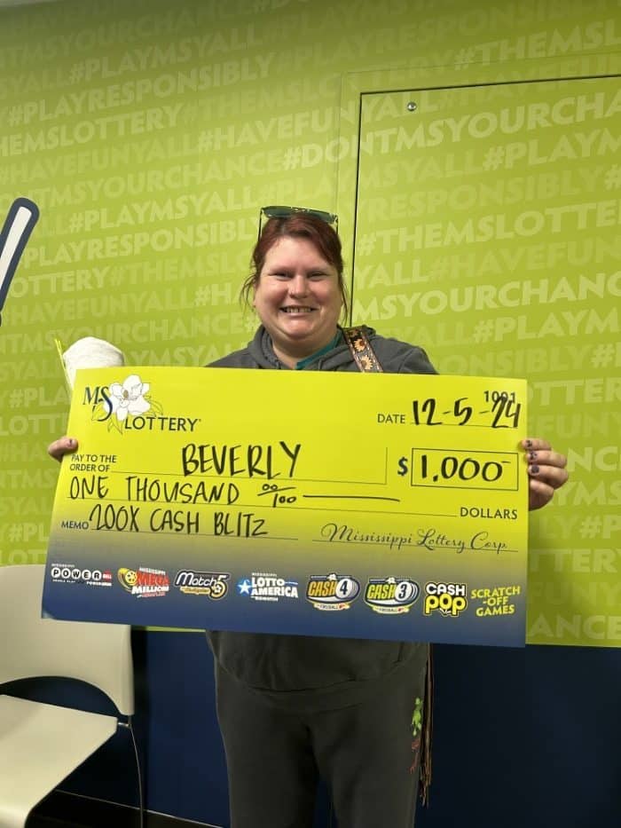 A Hattiesburg woman won $2,000 on a $10 scratch-off ticket from Minit Mart #7238 in Hattiesburg.