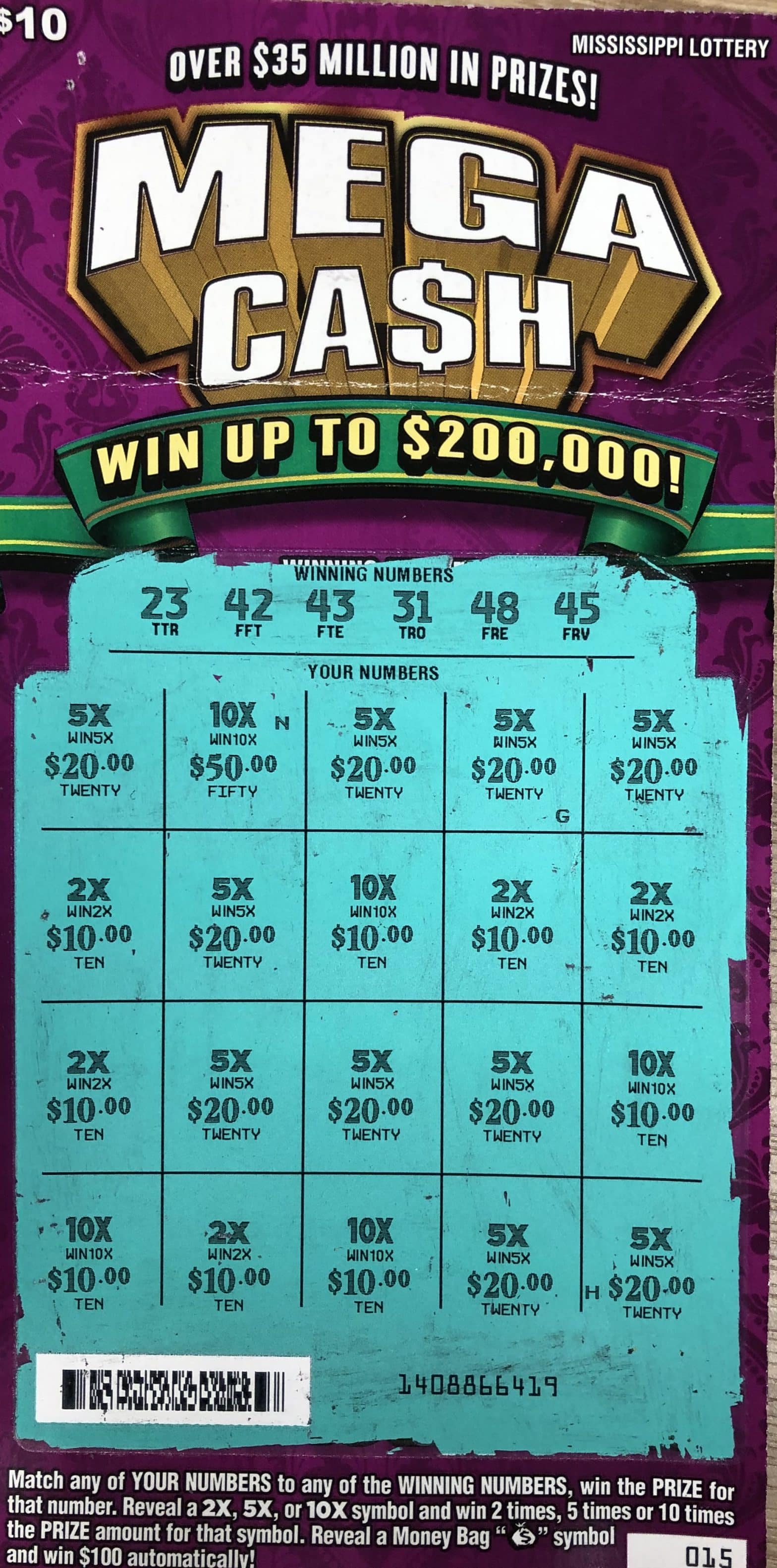 A Booneville player won $2,000 on a Mega Ca$h scratch-off game purchased at Big V Quick Mart on Chambers Dr., Booneville.