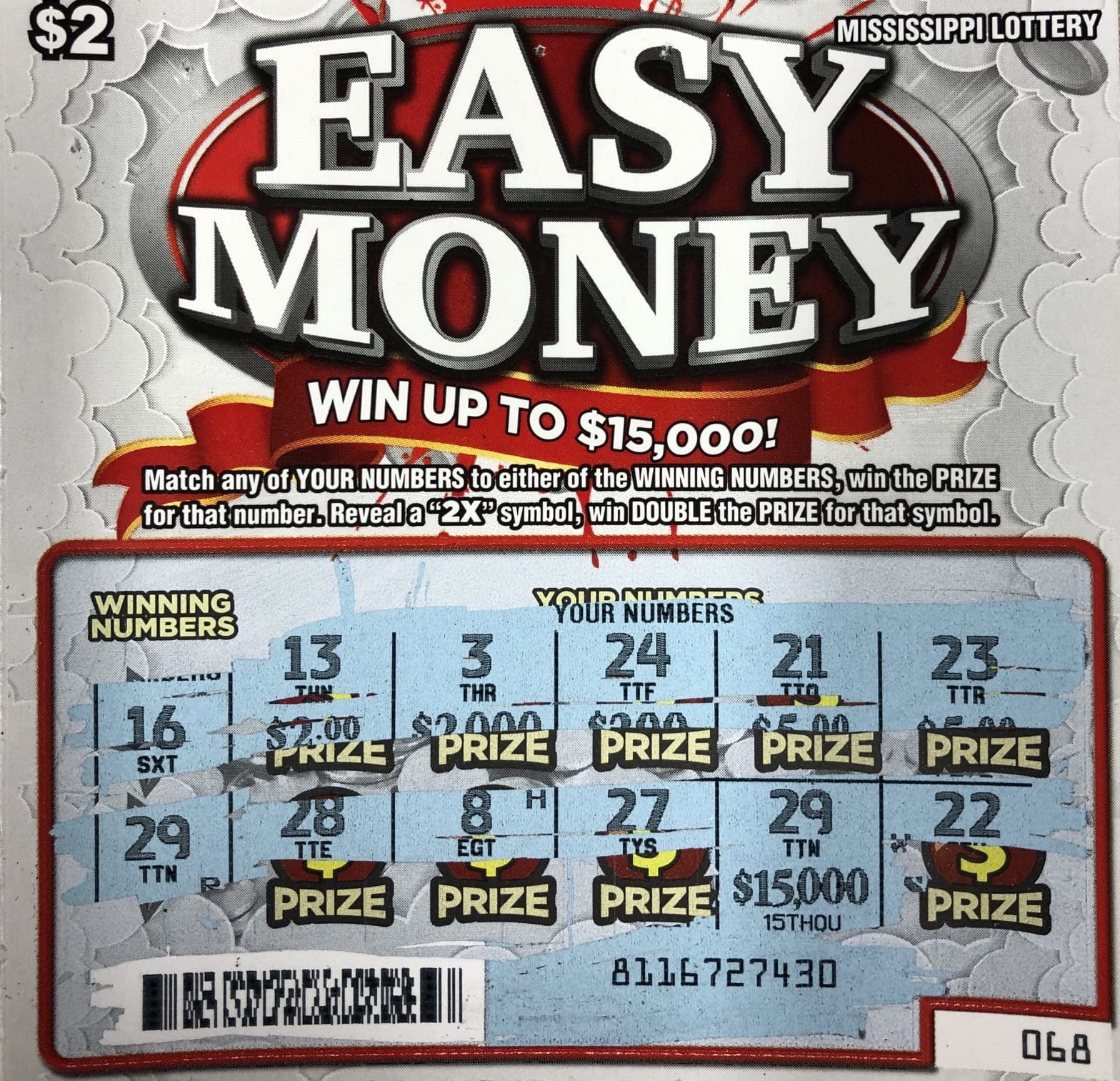A Starkville woman won $15,000 from an Easy Money scratch-off game purchased at Moreland Inc. on MS Hwy. 12 W., Starkville.